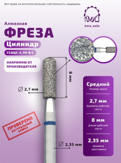 Фреза алмазная цилиндр-сфера 141027 синяя КМИЗ 115891