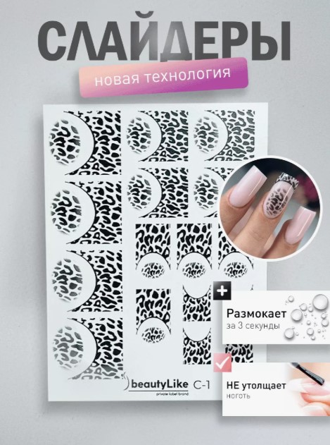 Наклейки для ногтей BeautyLike на водной основе предназначены для быстрого создания отличного дизайна на ногтях. Водные наклейки представляют собой тонкий и прочный слой пленки. Эти слайдеры благодаря эластичности просто переносятся на любуф форму ногтя и затем покрываются топом. Слайдеры для маникюра подходят как профессионалам, так и начинающим мастерам для самостоятельного декора ногтей.