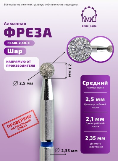Фреза алмазная шар 001025 синяя КМИЗ 112893