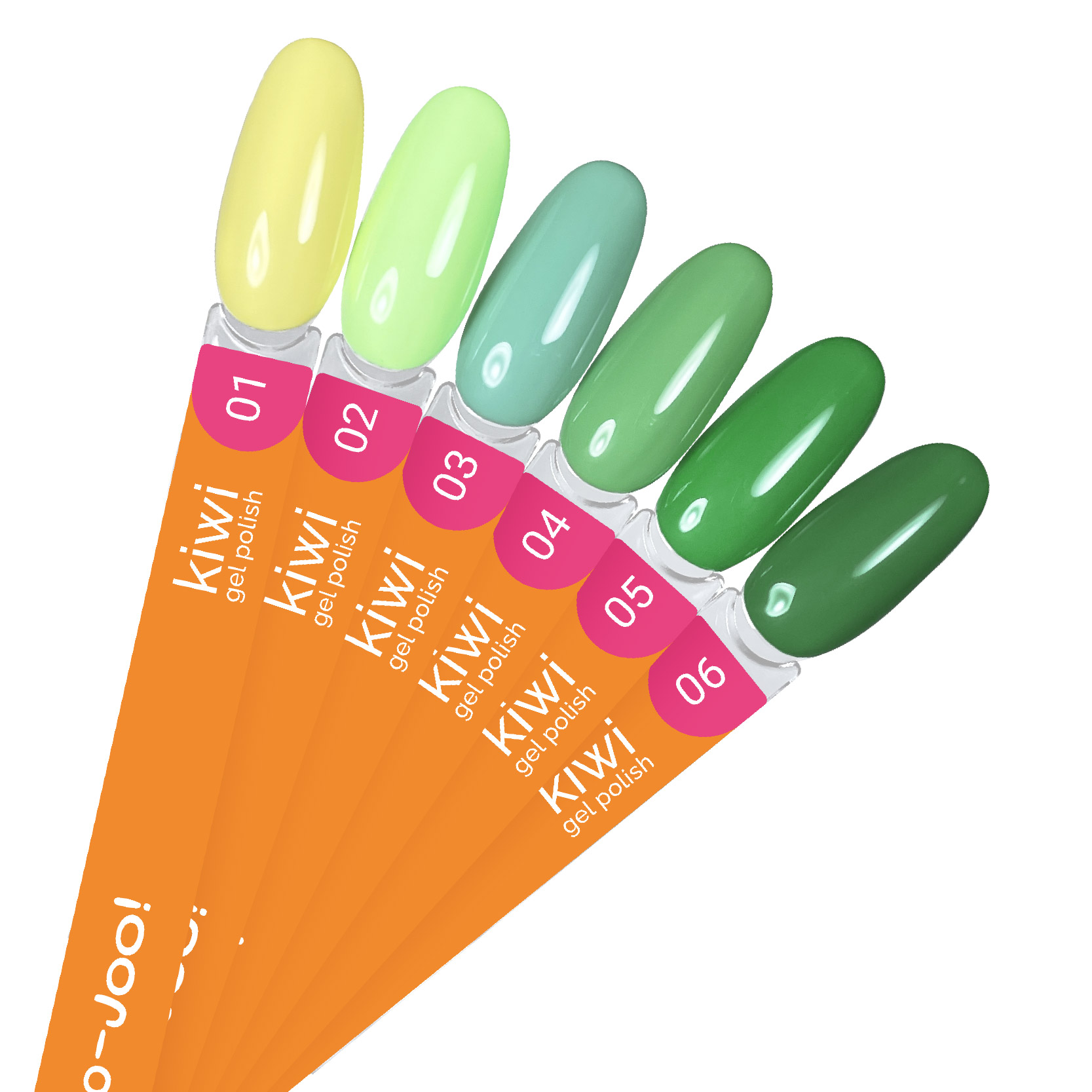 Заряд яркости и свежести с новыми гель-лаками из коллекции kiwi. Сочные оттенки для приближения лета уже в Joo-Joo! Солнечно-желтый, салатовый, нежная мята и неоново-зеленые. Все, что необходимо для воплощения самых ярких идей маникюра.