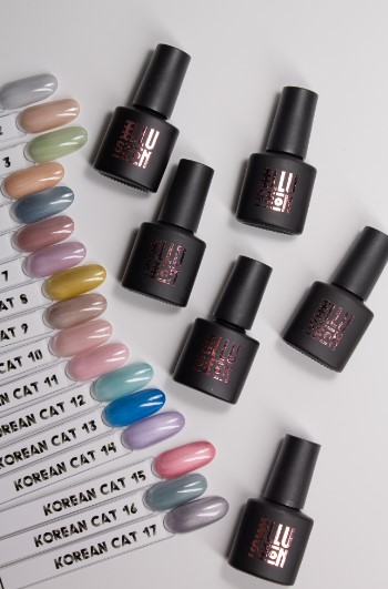 Гель-лак Korean Cat от ТМ LAKRES (Лакрес) это палитра корейских кошек, состоящая из 17 оттенков. Покрытие с лунным бликом и дополнительным шиммером дают эффект шелка. Очень комфортны в работе. Рекомендуем покрывать топом с УФ-фильтром. Благодаря полупрозрачности, для прозрачного покрытия – наносим в тонкий слой, для более глубокого и яркого эффекта – в несколько слоев. Гель-лаки универсальны, создавайте подложку для дизайна, тонкое вуалевое покрытие в один слой или плотное и яркое покрытие в два слоя.