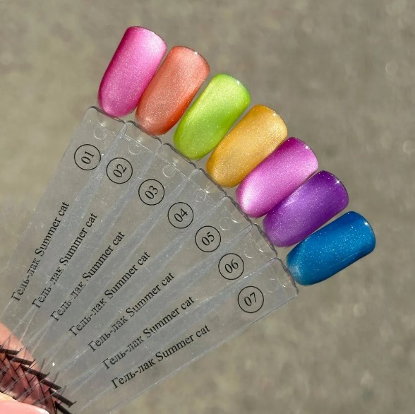 Ногти с покрытием Summer cat особенно красиво переливаются в лучах летнего солнца!