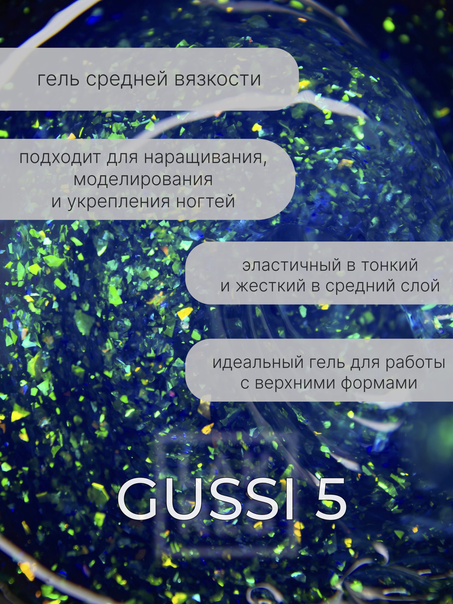 5 полупрозрачных оттенков с хорошим наполнением блесток / слюды.