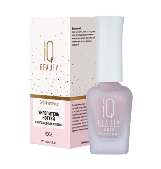 IQ BEAUTY Средство для ногтей/ Укрепитель с коллоидным золотом Gold Hardener/ для ослабленных и ломких ногтей/ Rose, 12.5 мл