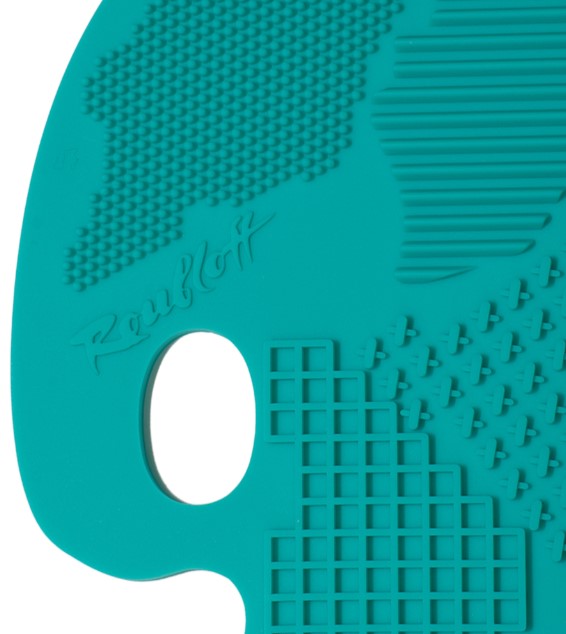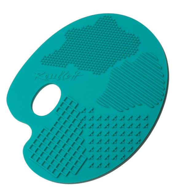 Коврик для мытья макияжных кистей Roubloff. Выполнен из плотного силикона, не порвется в процессе применения и прослужит вам очень долго. Различные формы текстур позволяют промыть кисти всех размеров и форм. Специальное отверстие позволяет удобно держать «Палитру» во время мытья.