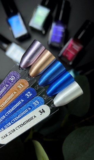 Лаки плотной пигментации, могут использоваться в дизайне самостоятельно или смешиваться с основной коллекцией, создавая разнообразные градиенты. Металлики отлично смотрятся как в «ковриках» с узорами, так и в создании причудливых реверсов. Помогут вам создать нарядное осеннее настроение и будут незаменимы в зимних дизайнах.