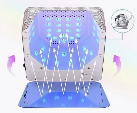 — Функция Low Heat Mode. Поэтапное увеличение мощности излучения и постепенное просушивание гелей для уменьшения чувства жжения.
