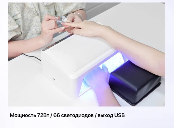 Лампа SNRQI L6 для двух рук с отдельной подушкой для рук клиента позволяет комфортно и быстро выполнять маникюр и сушить ногти как дома, так и в салоне красоты.