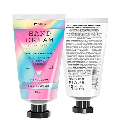 Milv Восстанавливающий крем для рук с маслом авокадо и шиммером «SILVER». Арт.18926. ФРУКТОВЫЙ УХОД 40 мл