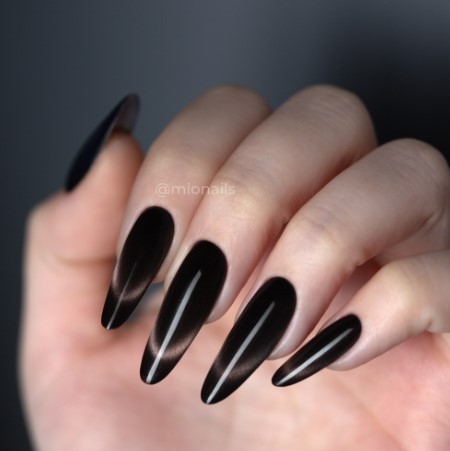 Коллекция «Azia Cats» – 6 темных и насыщенных оттенков магнитных гель-лаков с эффектом «кошачий глаз», которые создают необычное сочетание деликатного блика и темных оттенков.