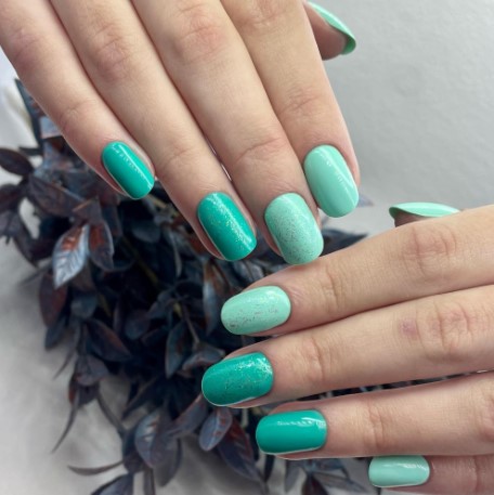 Гель-лак Mio R-16 – светлый зелёный оттенок с лёгким голубым подтоном.