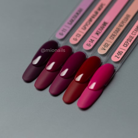 Гель-лак Mio V-02 – насыщенный вишнёвый оттенок.