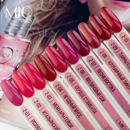 Гель-лак Mio Z-08 – светлый малиновый оттенок с перламутром.