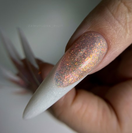 — Блестки и хлопья полностью утопают в основе;