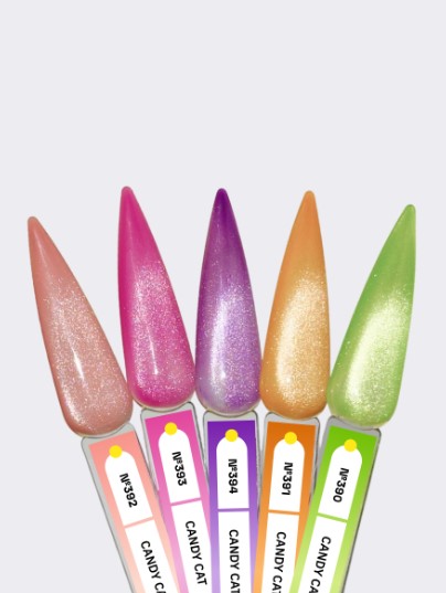 Коллекция CANDY CAT от Mojo состоит из 5 насыщенных цветов, которые можно наносить в один слой на разные подложки: прозрачную, молочную, цветную или чёрную. Используйте их как самостоятельное покрытие или для создания самых смелых дизайнов