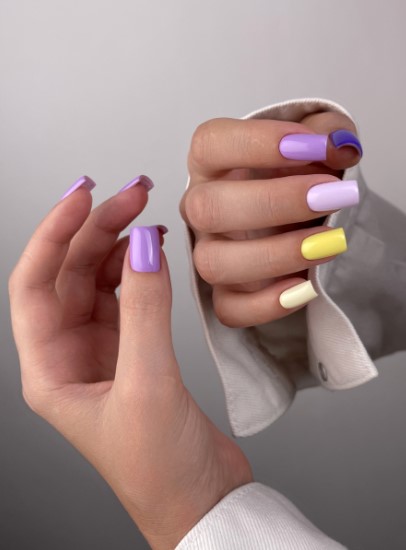 5. Нанесите цветной гель-лак и просушите ногти в лампе. Рекомендуемое время полимеризации в UV-лампе составляет 2 минуты, в LED-лампе – 60 секунд.