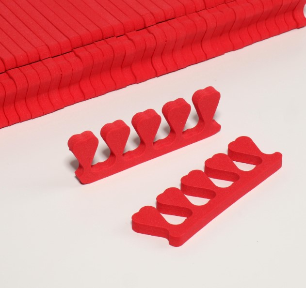 Разделители для пальцев для педикюра — это маленькие девайсы из пены EVA, которые помогают создать комфортную и безопасную среду для проведения педикюрных процедур. Основная функция разделителей для педикюра — разделение пальцев стопы, чтобы избежать случайных повреждений ногтей и кожи во время обработки ногтей или нанесения лака на ногти. Этот аксессуар предназначен для того, чтобы зафиксировать каждый палец в нужном положении, обеспечивая удобство и безопасность рабочего процесса, при этом избежать натирания пальчиков. Они одеваются между пальчиков, как перегородки, не доставляя неприятных ощущений и боли.