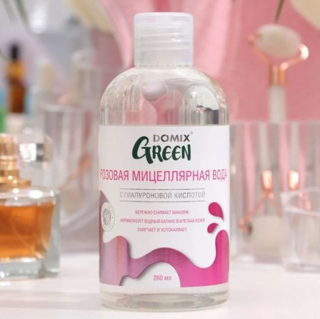 Мицеллярная вода Domix бережно очищает кожу лица и шеи, удаляя загрязнения и макияж. Активные компоненты, такие как коллоидное серебро и экстракт алоэ, обладают бактерицидным действием и предотвращают закупорку пор. Витамины Д-пантенол и С способствуют заживлению и улучшению состояния кожи, а гиалуроновая кислота поддерживает водный баланс, придавая упругость и эластичность. Подходит для любого типа кожи. Не содержит спирт, парабены и силиконы. Рекомендуется наносить средство на ватный диск и очищать лицо. После использования примите душ.