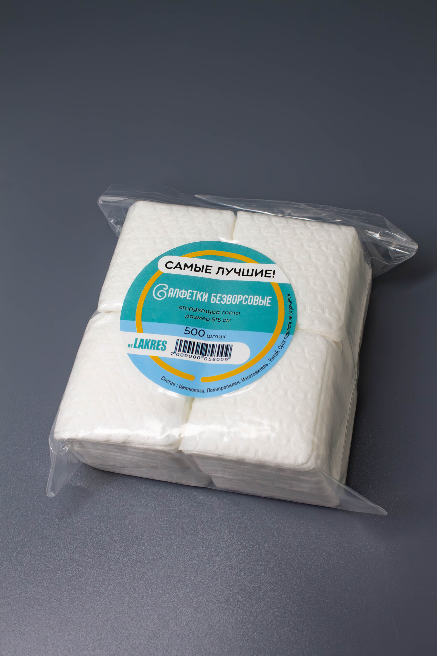 Безворсовые салфетки для маникюра «Самые лучшие» от Lakres 500 шт., размер одной салфетки 5х5 см.