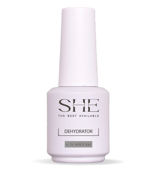 Дегидратор SHE — это специальная жидкость, которая дополнительно обезжиривает, дезинфицирует и убирает лишнюю влагу с поверхности ногтевой пластины, что обеспечивает улучшение сцепки ногтя и покрытия.