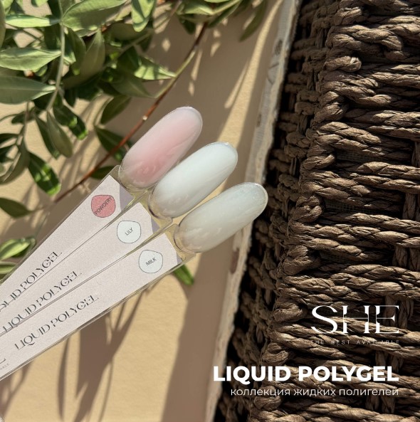 Жидкий полигель от бренда SHE в оттенке Lily (молочный) — уникальный материал средне-жидкой консистенции, обладающий жесткостью геля. Благодаря многозадачности и удобству в работе жидкий полигель не затекает, идеально самовыравнивается, не даёт усадку. Присутствует минимальная эластичность, за счёт этого не скалывается и не ломается.