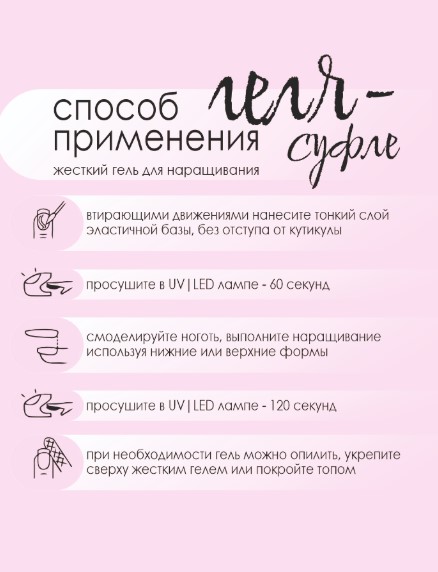 Жёсткий гель «Cуфле» BSG для наращивания и восстановления ногтей ВЫСОКОЙ ВЯЗКОСТИ — это жёсткий гель для моделирования ногтей, не обладает функцией выравнивания.