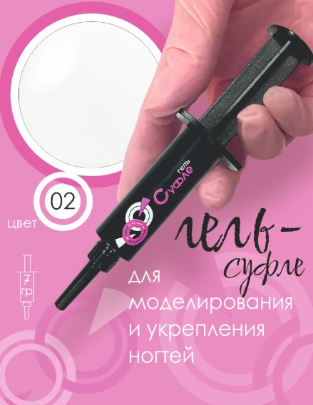 ШПРИЦ Жёсткий гель для наращивания Суфле №02 ВЫСОКАЯ ВЯЗКОСТЬ — Молочный (7 г)