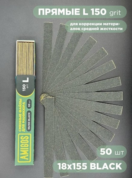 Сменный файл AMIGOS L 18×155 мм, 150 грит, 50 шт/уп, black