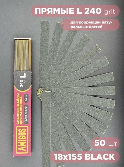 Сменный файл AMIGOS L 18×155 мм, 240 грит, 50 шт/уп, black