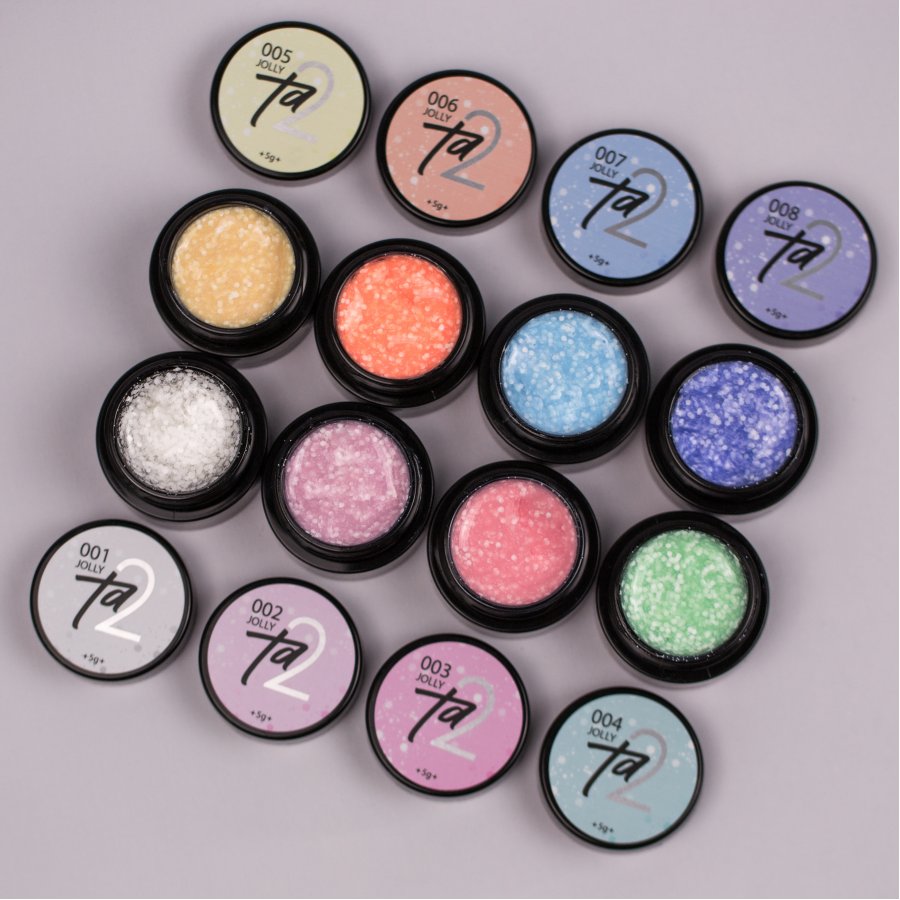 Rubber Base JOLLY от TA2 — цветная камуфлирующая база средней вязкости с множеством белых шестигранников разного размера.