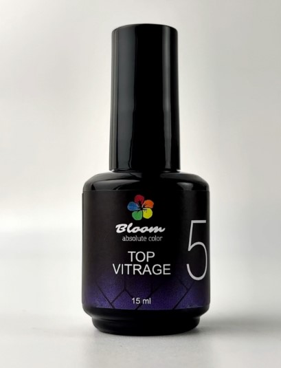Цветной топ Bloom COLOR VITRAGE плотный, яркий, хорошо просыхает. Сохраняет стойкий блеск и ускоряет работу мастера. Наносится с небольшим выравниванием, не полосит и быстро выравнивается.