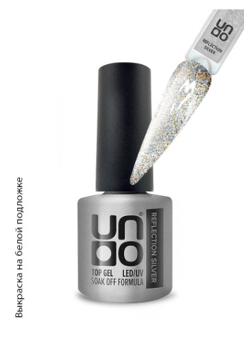 Для закрепления маникюра и придания ему супер-блеска со светоотражающим эффектом перекройте цвет верхним покрытием для гель-лака UNO Reflection.