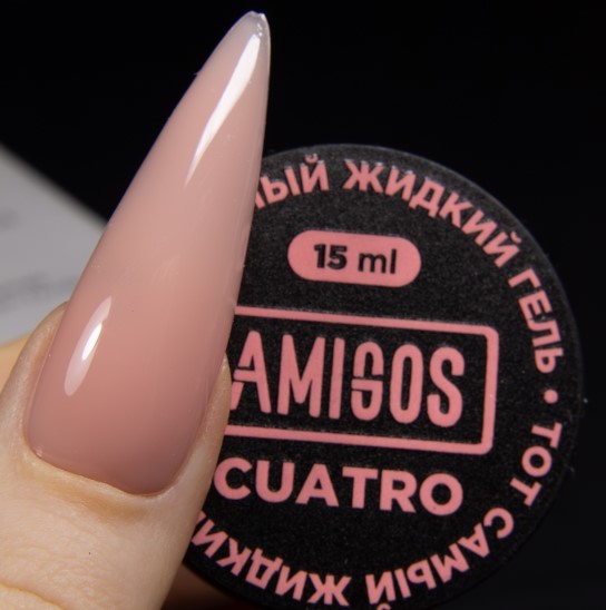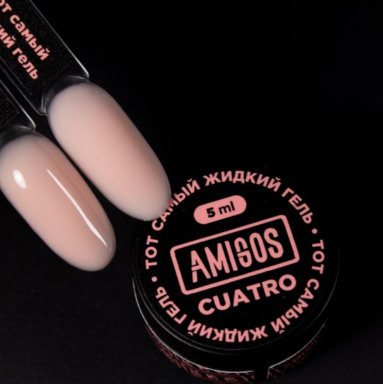 Жидкий гель Amigos (Амигос) — средней консистенции, но по отношению к обычным гелям — жидкий, идеален для тех, кто только начинает. Он отлично укрепляет, поджимается и держит арку. В тонком слое — пластичный. При правильном нанесении выравнивается за секунды.Подходит для техники моделирования верхними формами. Толщина покрытия с ребро пластиковой карточки.