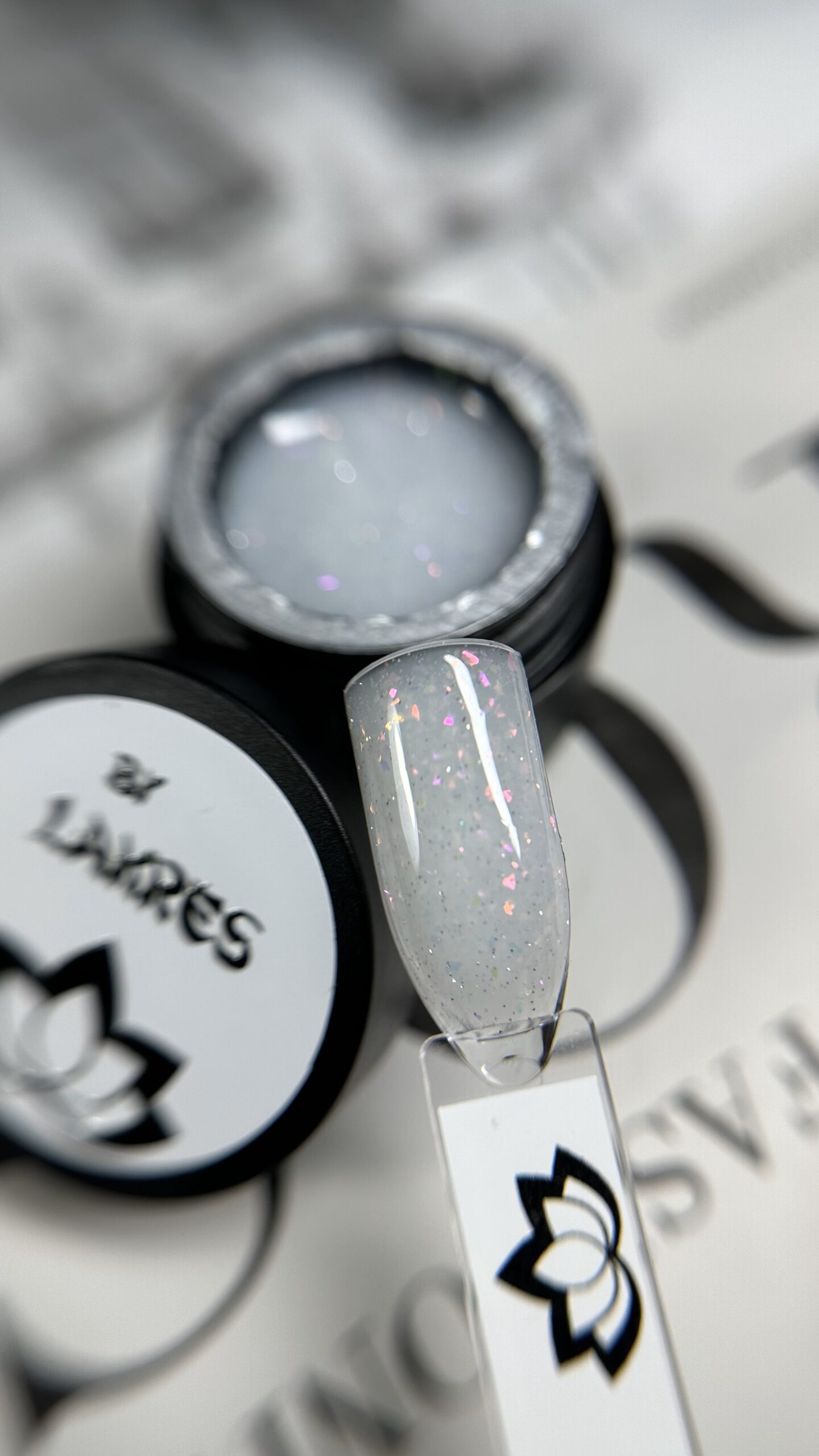 Жидкий гель Lakres Белый Лотос — жесткий гель жидкой консистенции. Цвет Белый Лотос имеет помимо светоотражающих частиц, ещё и хлопья Юки.