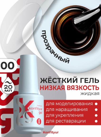 Жёсткий гель в бутылке Konfityur №00 НИЗКАЯ ВЯЗКОСТЬ — Бесцветный прозрачный (20 мл)