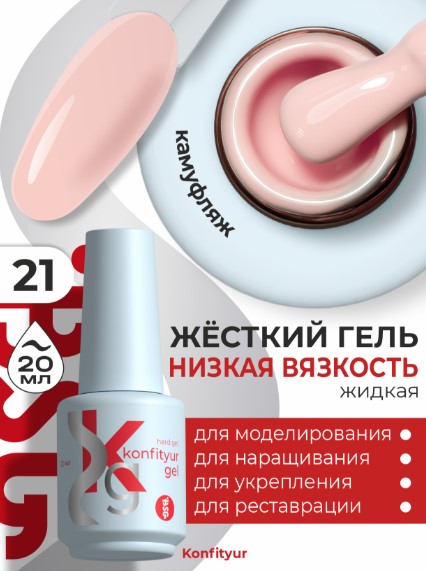 Жёсткий гель в бутылке Konfityur №21 НИЗКАЯ ВЯЗКОСТЬ — Чайная роза (плотный) (20 мл)