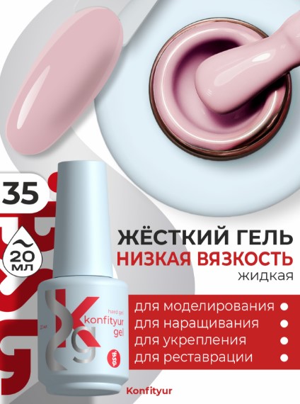 Жёсткий гель в бутылке Konfityur №35 НИЗКАЯ ВЯЗКОСТЬ — Светло-розовый (плотный) (20 мл)