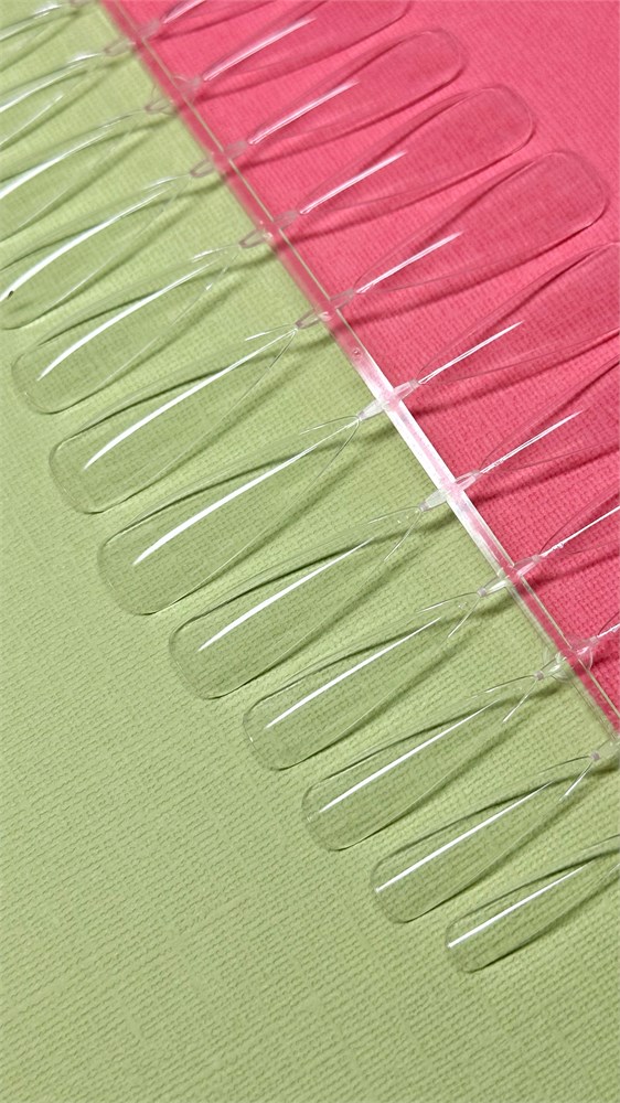 Обладают стандартной аркой, но благодаря гибкости, очень эргономично ложатся на ногтевую пластину. Типса легко подгоняется под арку ногтя клиентки.