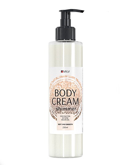 Лёгкий крем-блеск для тела MILV с золотым шиммером и роскошным цветочным ароматом. Легко наносится, быстро впитывается, придаёт коже мерцающее сияние.