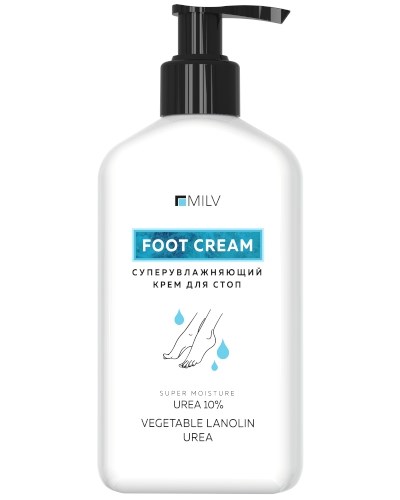 СуперУвлажняющий крем MILV интенсивно увлажняет кожу стоп. Легкая эмульсия быстро впитывается при нанесении.